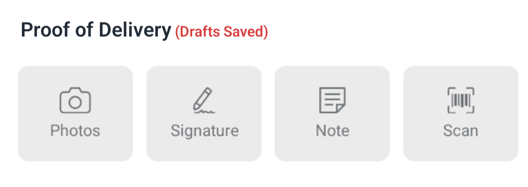 - Tap the button for the type of delivery proof you would like to attach and follow the steps provided.