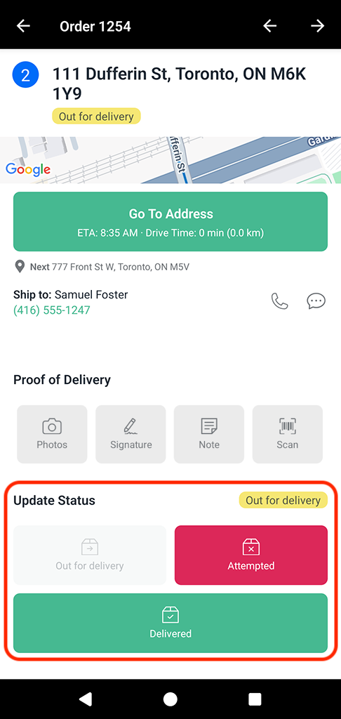 EasyRoutes allows drivers to mark stops as Delivered when completed successfully, or Attempted if the stop could not be completed successfully. To update the status of any stop while completing a route: