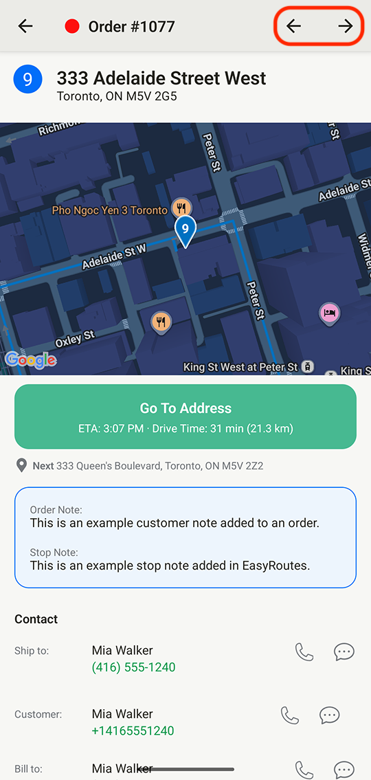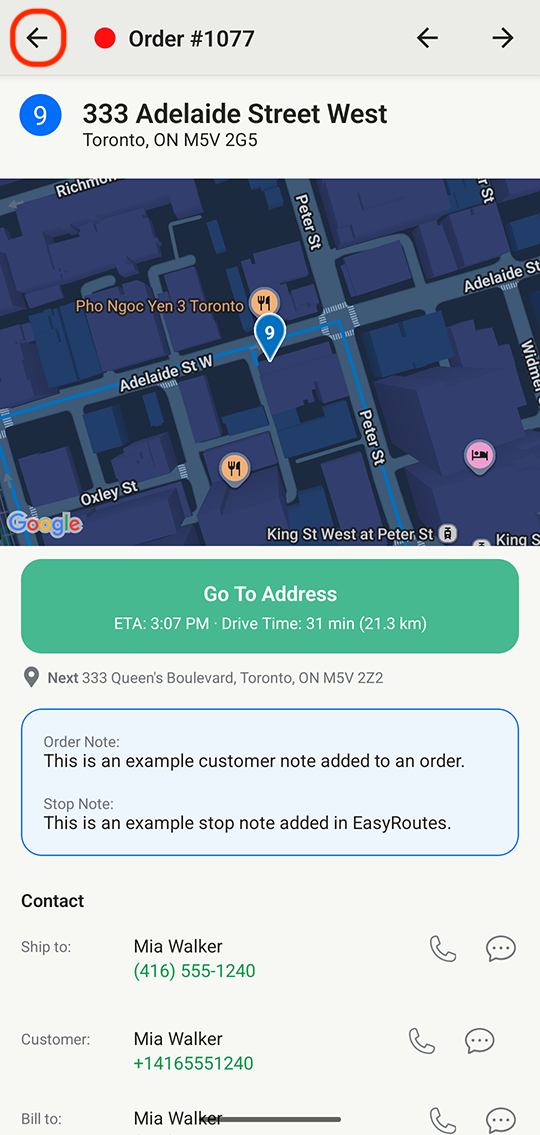 You can also skip a stop by hitting the back button, and selecting a new stop from the route overview screen: