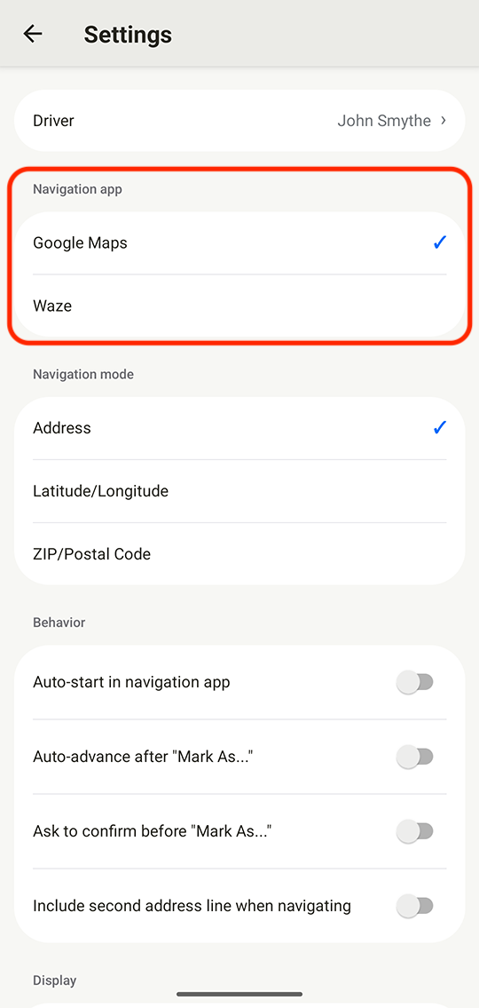 Under the Navigation app section, you can select which app you would like EasyRoutes to open when you click on the "Get Directions" button: