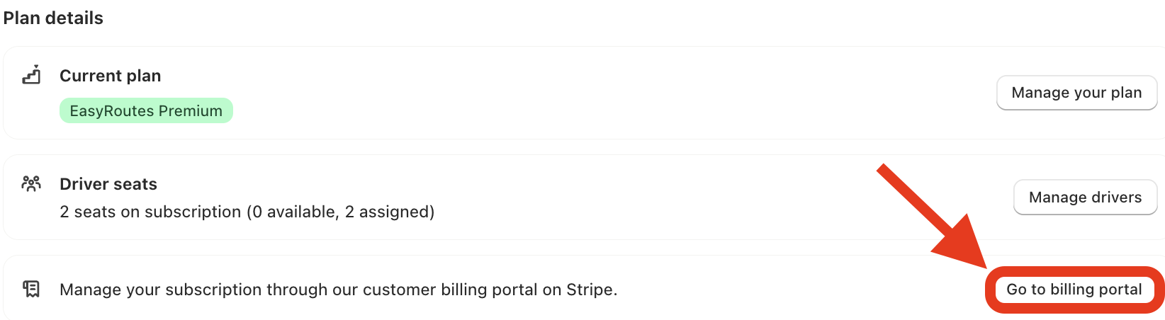 - Go to Plan Details and click on 'Go to to billing portal' to update your information