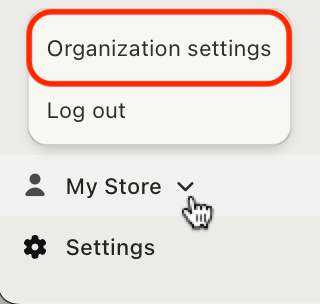 To add users to your organization, click your store's name in the bottom left-hand corner of EasyRoutes for Web, and select Organization settings: