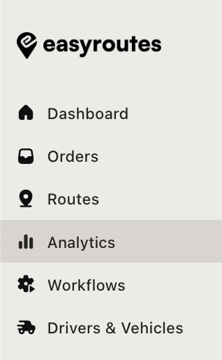 Click into the Analytics tab from the EasyRoutes navigation menu to access analytics data for all your deliveries:
