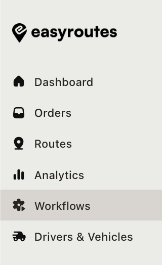 To start, access the Workflows item from the EasyRoutes sidebar navigation menu: