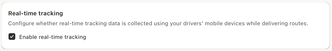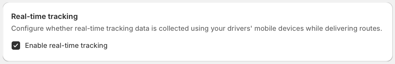 Ensure this setting is enabled if you want to track your drivers' live GPS location while completing routes. When enabled, driver location can also be shared with customers from your EasyRoutes Settings > Order Tracking tab; locations can also be viewed from the Tracking tab of any live or completed route.