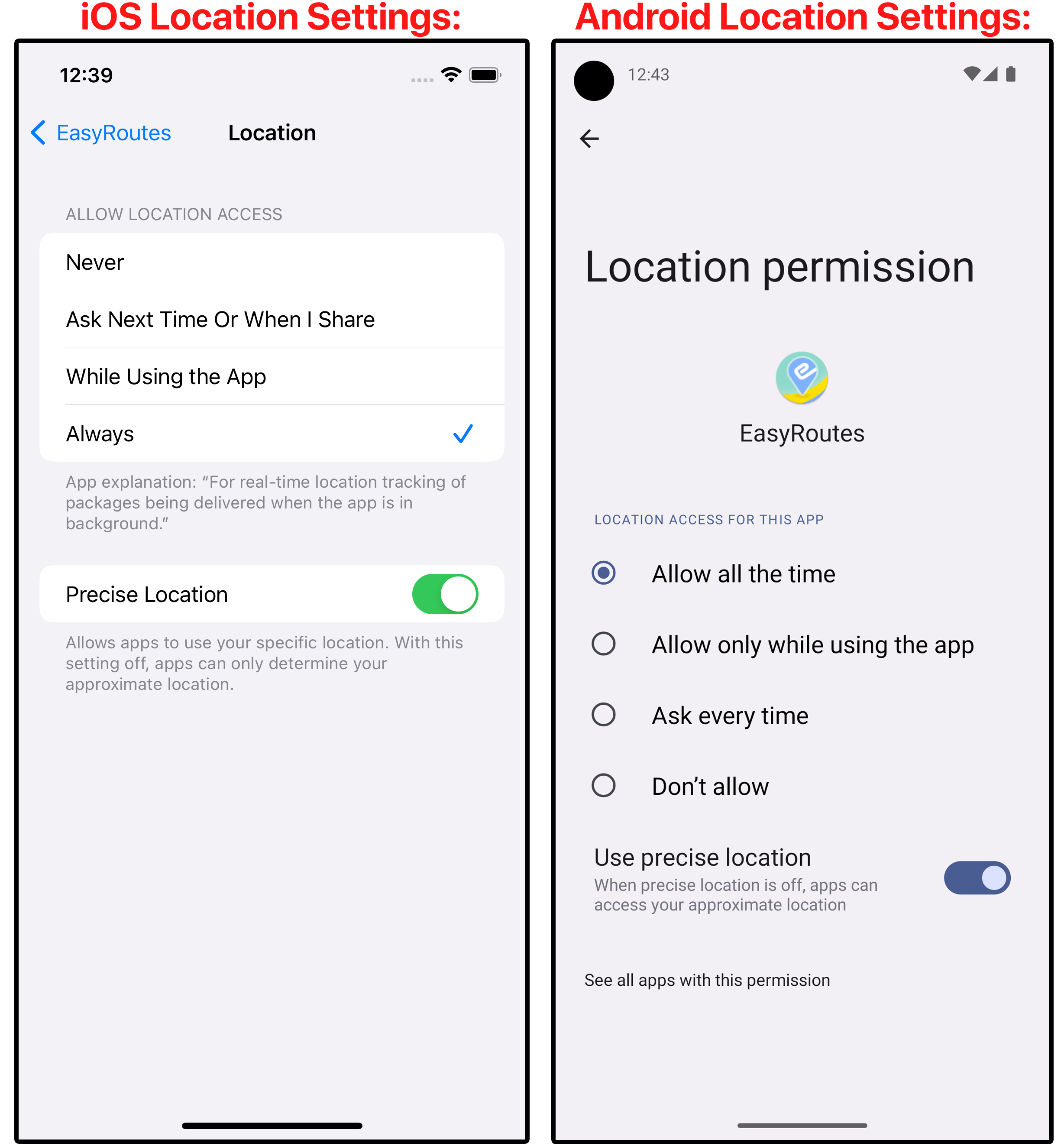 2. Location Permissions: You need to grant the app "Always" access to your location and enable "Precise Location" in your device settings (iOS/Android).