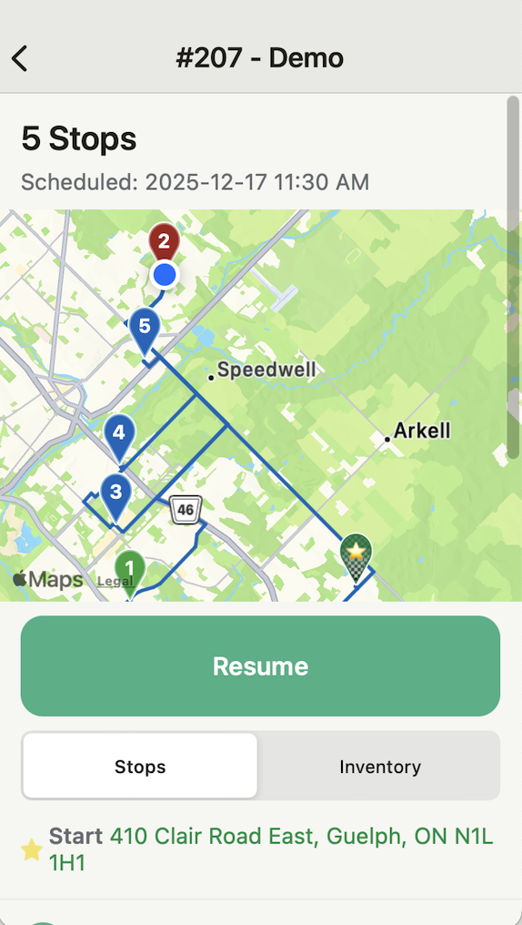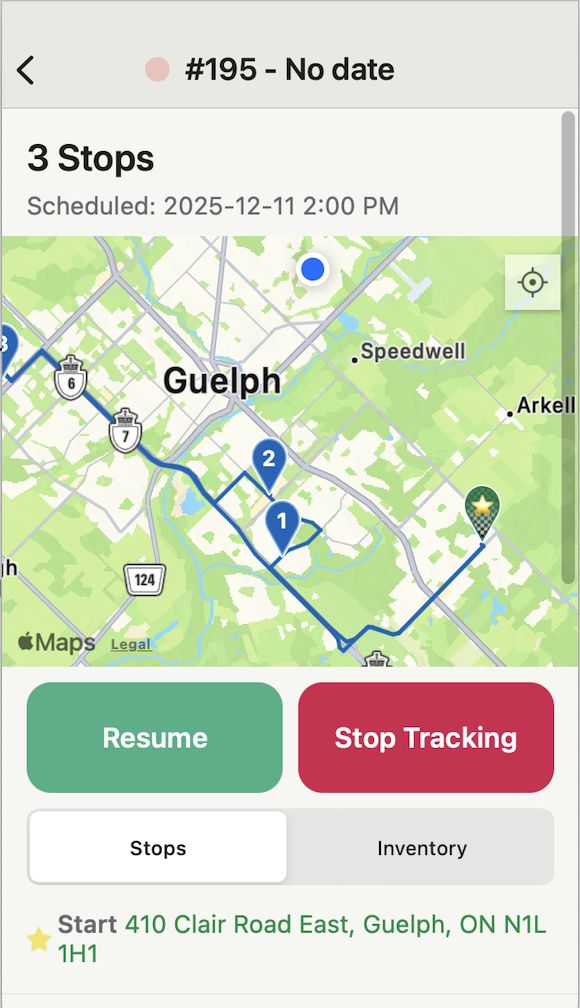 4. Updates: Your live location, past path, and stop completion updates are displayed in real-time on the route's tracking tab.