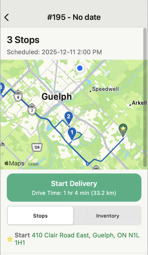 3. Route Start: Tracking begins when you start a route by clicking 'Start Delivery'.